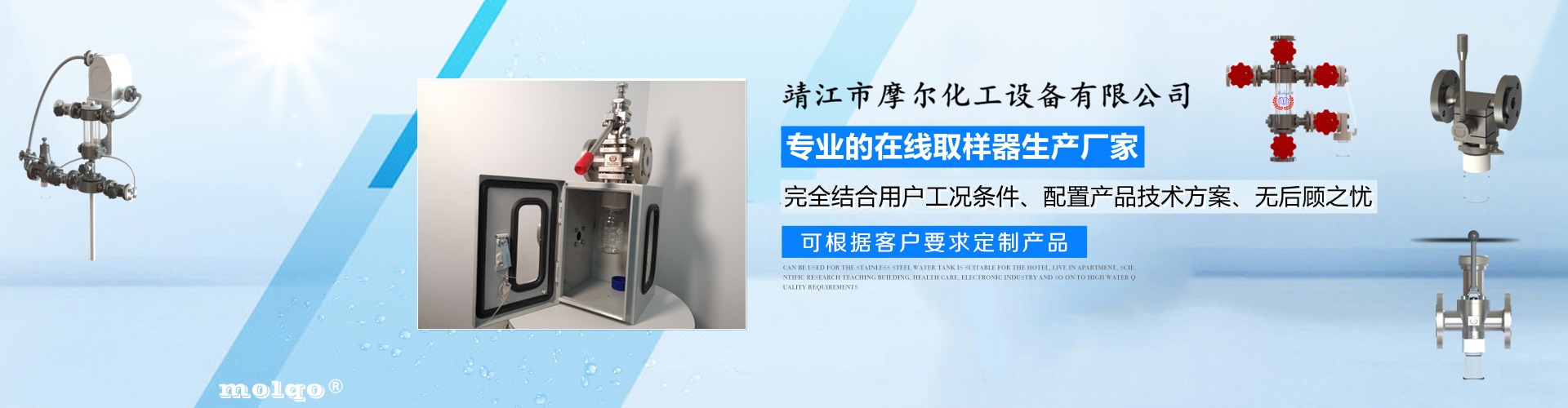 靖江市摩爾化工設備有限公司位于蘇中明珠——江蘇省靖江市城南工業園區東進路北側天元艾爾瑞內,另有生產基地位于靖江市經濟技術開發區新號路1號鼎電科技園內。我公司由數名長期從事化工生產、氟塑襯里模具開發以及機械自控設備的專業人員共同合作成立,致力于提供客戶最優的高效在線取樣、反應及精餾分離設備,為客戶提供合理的設備選型方案,以幫助客戶提高綜合生產效率以及改善生產現場環境為目標。 本公司主要制造及銷售的產品有:釜用在線取樣裝置,管道取樣閥,釜用清洗噴淋裝置、搪玻璃設備、GMP專用搪玻璃設備、氟塑襯里設備、攪拌器、釜用機械密封、氣動閥門及搪玻璃管道、襯氟閥門管道、非標不銹鋼容器,精餾塔塔器、片式冷凝器及PTFE密封件、鋯、鈦、鉭、鎳等加工件制品。我司是一家集研發銷售、設計咨詢服務于一體的專業···| 含山县 | 青州市 | 漳州市 | 家居 | 新疆 | 财经 |